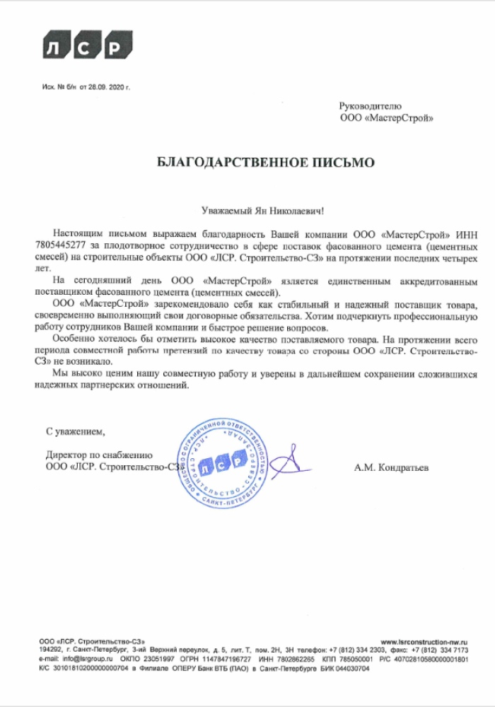 Кроме того, мы постоянно внедряем инновационные технологии и совершенствуем производственные процессы, что позволяет нам соответствовать самым высоким стандартам качества и экологической безопасности. ГК «МастерСтрой» стремится к долгосрочному партнерству и всегда открыт для обсуждения индивидуальных условий, чтобы вы получили максимально выгодные предложения и поддержку на всех этапах работы с нами. Выбирая нас, вы выбираете надежность, опыт и ответственность — ключевые гарантии успешного строительства с использованием качественных ЖБИ изделий.